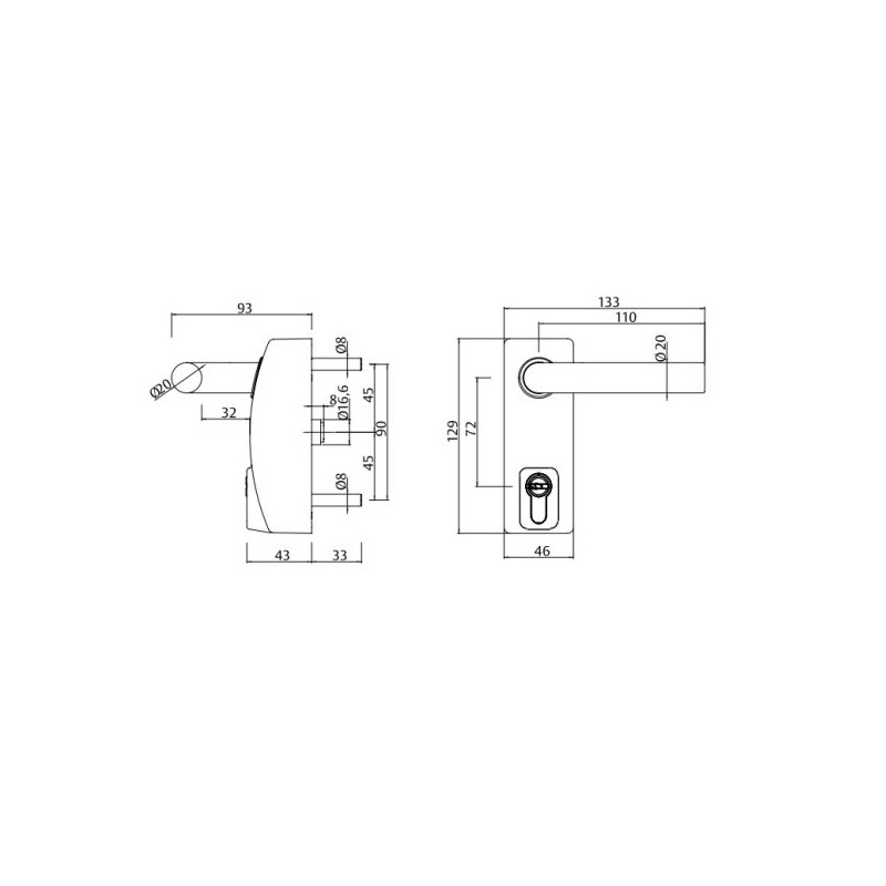 - Kivitel: 1 db külső oldali kilincs rászegzős pánikzárakhoz