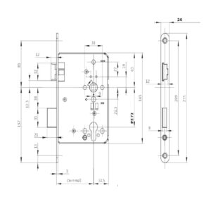 BKS Tűzgátló Cilinderes Bevésőzár 80/72/235/24/9mm balos